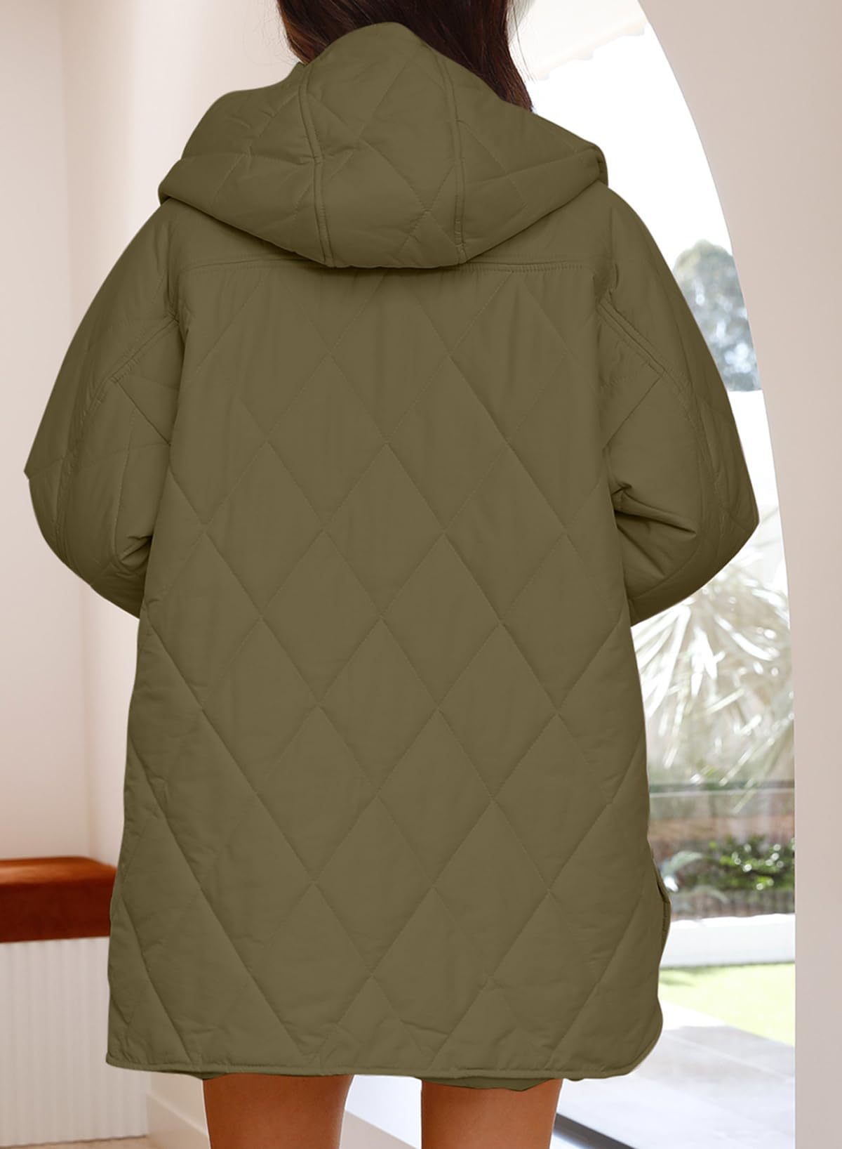 Plus Size, Women’s Lightweight Hooded Jacket with Diamond-Stitched Rhombus Quilted design – Thin Outer Coat Suitable for Fall/Winter, Casual Dress or Outerwear
