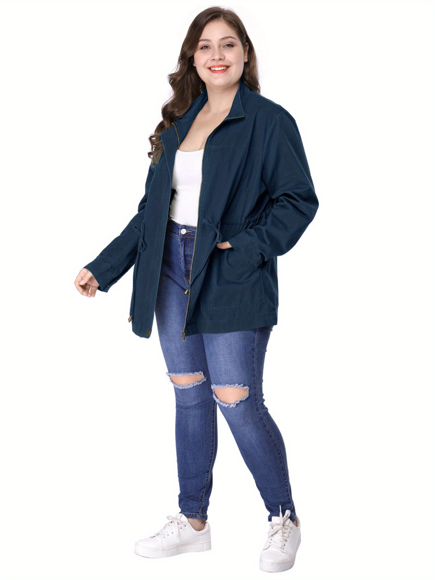 Women’S Plus Size Jackets Lightweight Anorak Drawstring Utility Jacket with Pockets