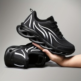 Men's Trendy Woven Knit Breathable Running Shoes With Air Cushion, Comfy Non Slip Durable Lace Up Sneakers For Men's Outdoor Activities